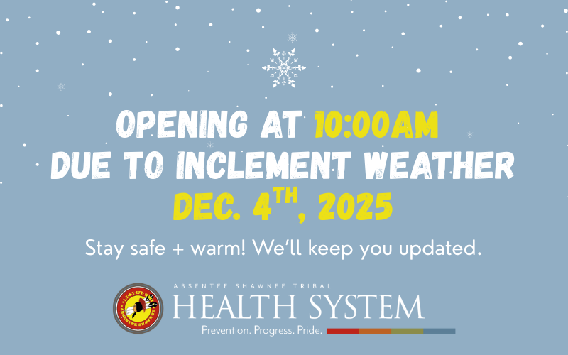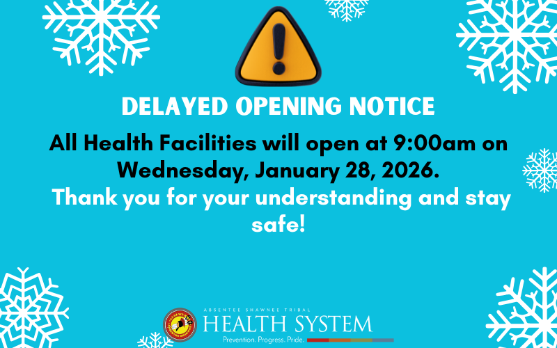 The accompanying image is the current operating hours of the Absentee Shawnee Tribal Health System as of January 3rd, 2024.