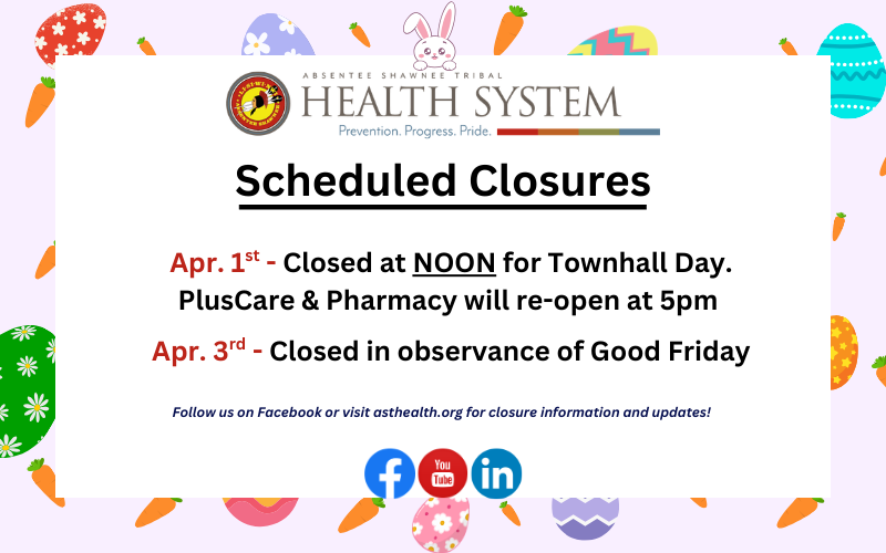 The accompanying image is the current operating hours of the Absentee Shawnee Tribal Health System as of January 3rd, 2024.