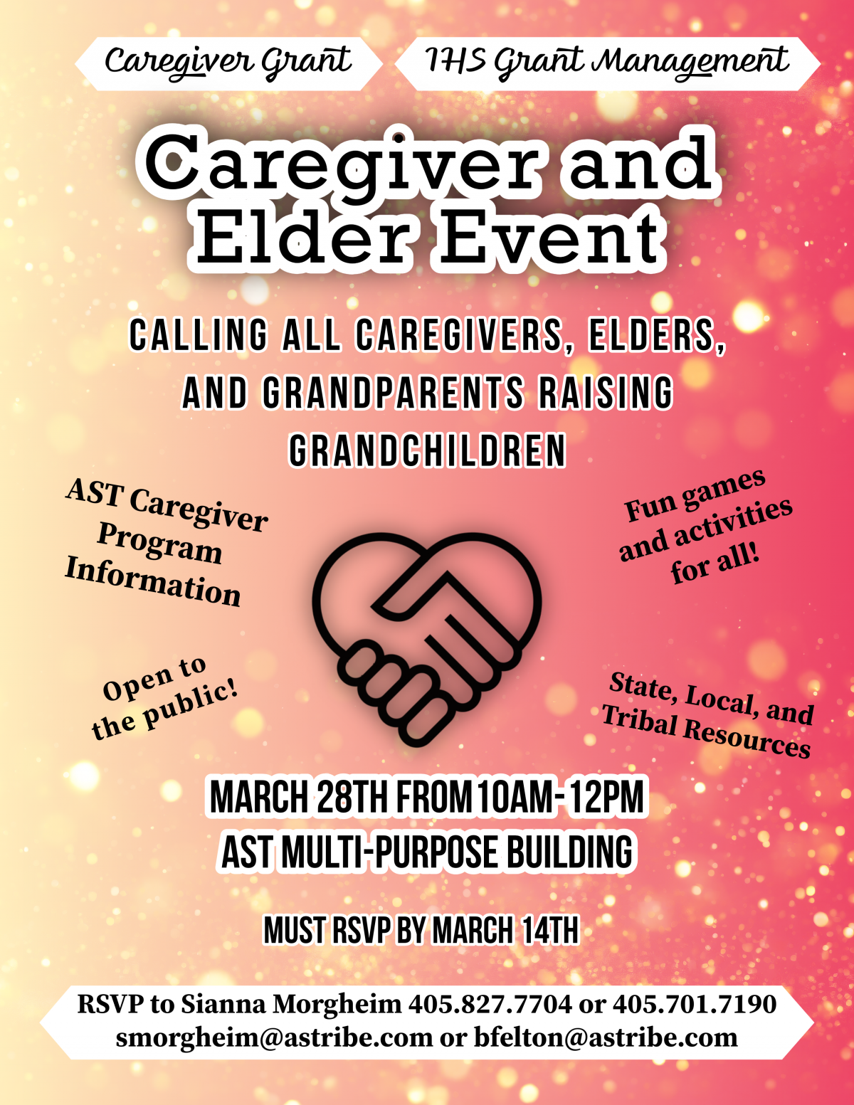 Join us to learn about AST Caregiver Program Information and explore various State, Local, and Tribal Resources available to help support you and your family. Plus, there will be games and activities for everyone to enjoy!